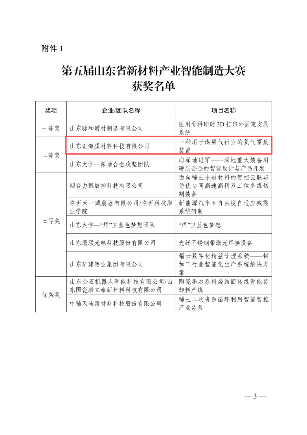 喜报!汇海膜项目荣获省级智能制造大赛二等奖荣膺省级大奖!
